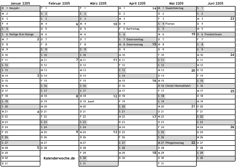 Kalender 2205