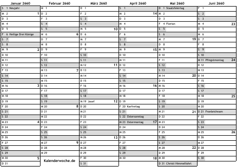 Kalender 2660