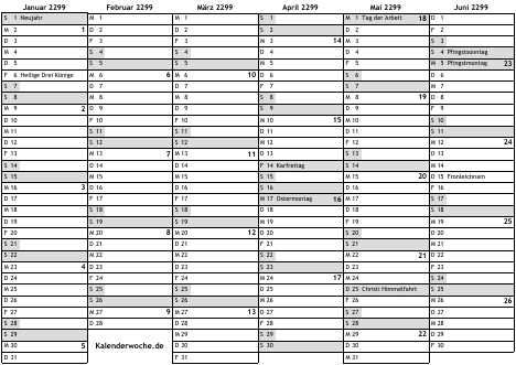 Kalender 2299