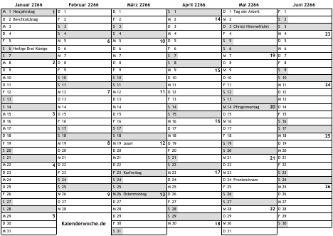 Kalender 2266