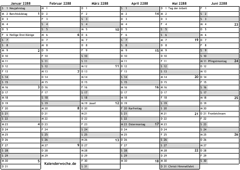 Kalender 2288